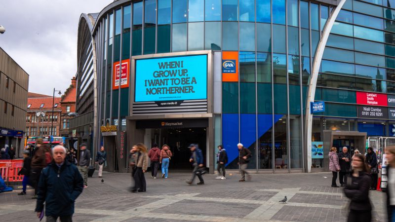 امتدت هوية المهرجان إلى حملة إعلانية في لوحات ضخمة بالتعاون مع شريكهم Open Media، تظهر في مانشستر وليفربول ونيوكاسل. وبدلًا من التركيز على أسماء المتحدثين أو مبيعات التذاكر، تركز الحملة على تجربة مشتركة أصعب في أن تُحدَّد: مغادرة مسقط الرأس بحثًا عن الفرص وكيف يمكن لذلك أن يعيد صياغة قصتك الشخصية.